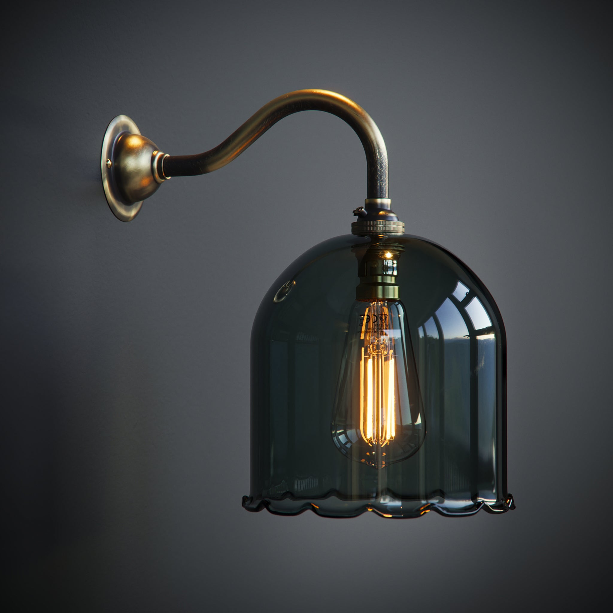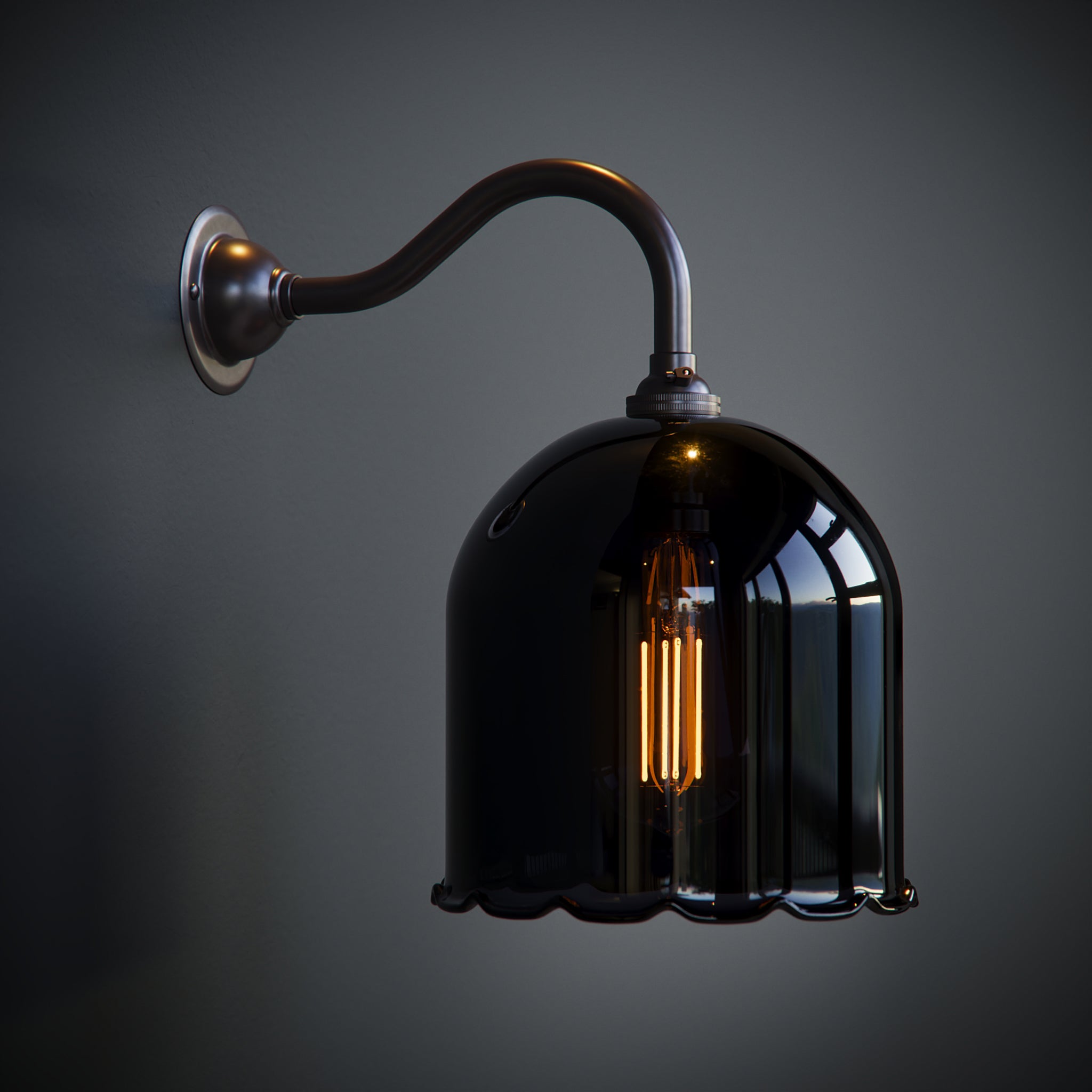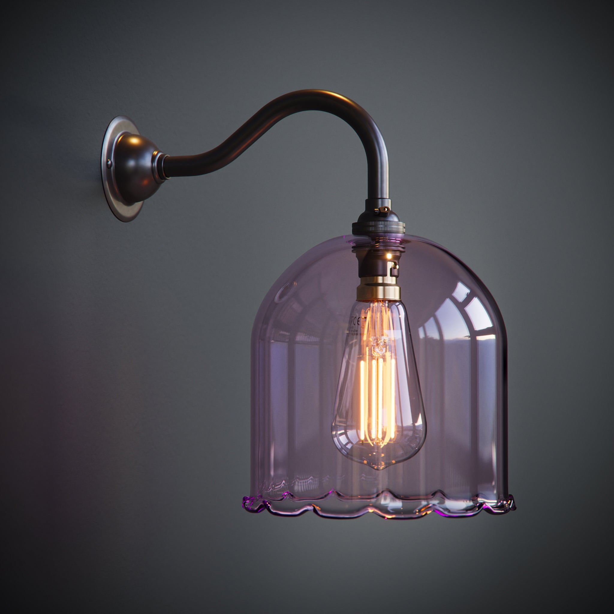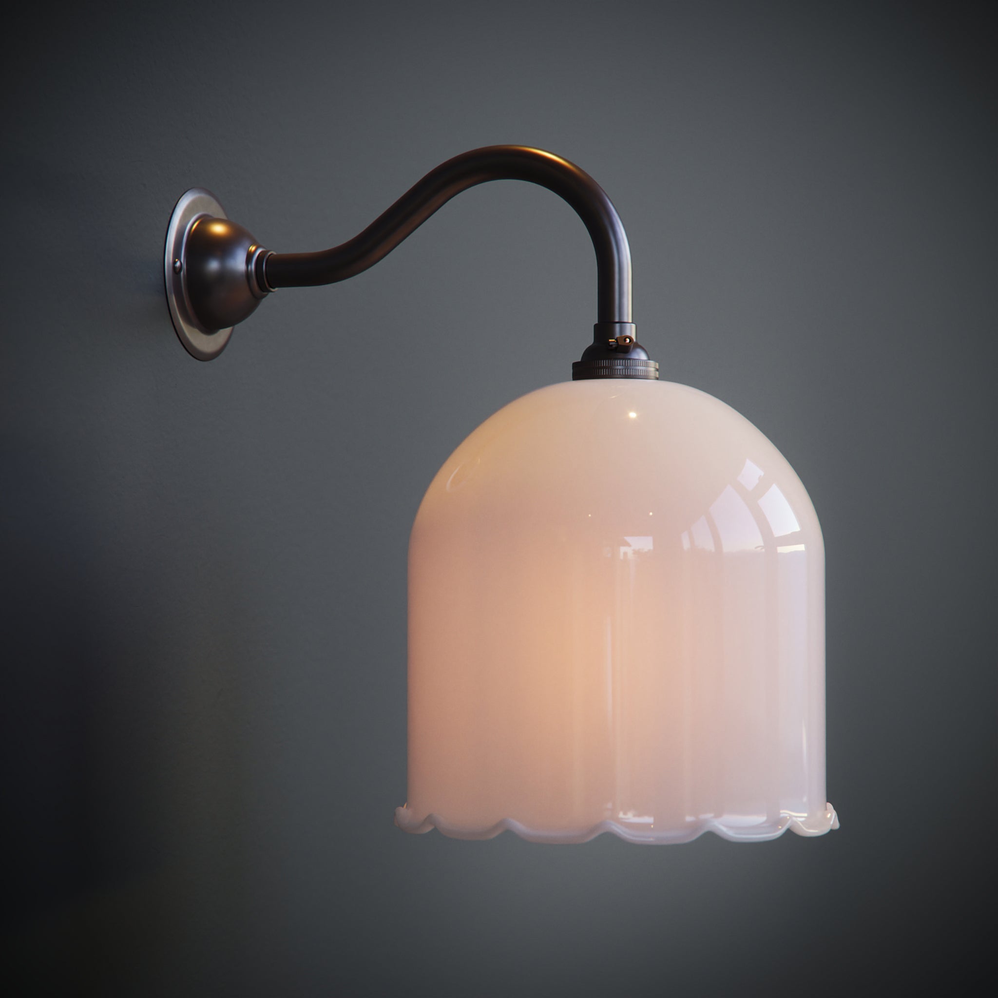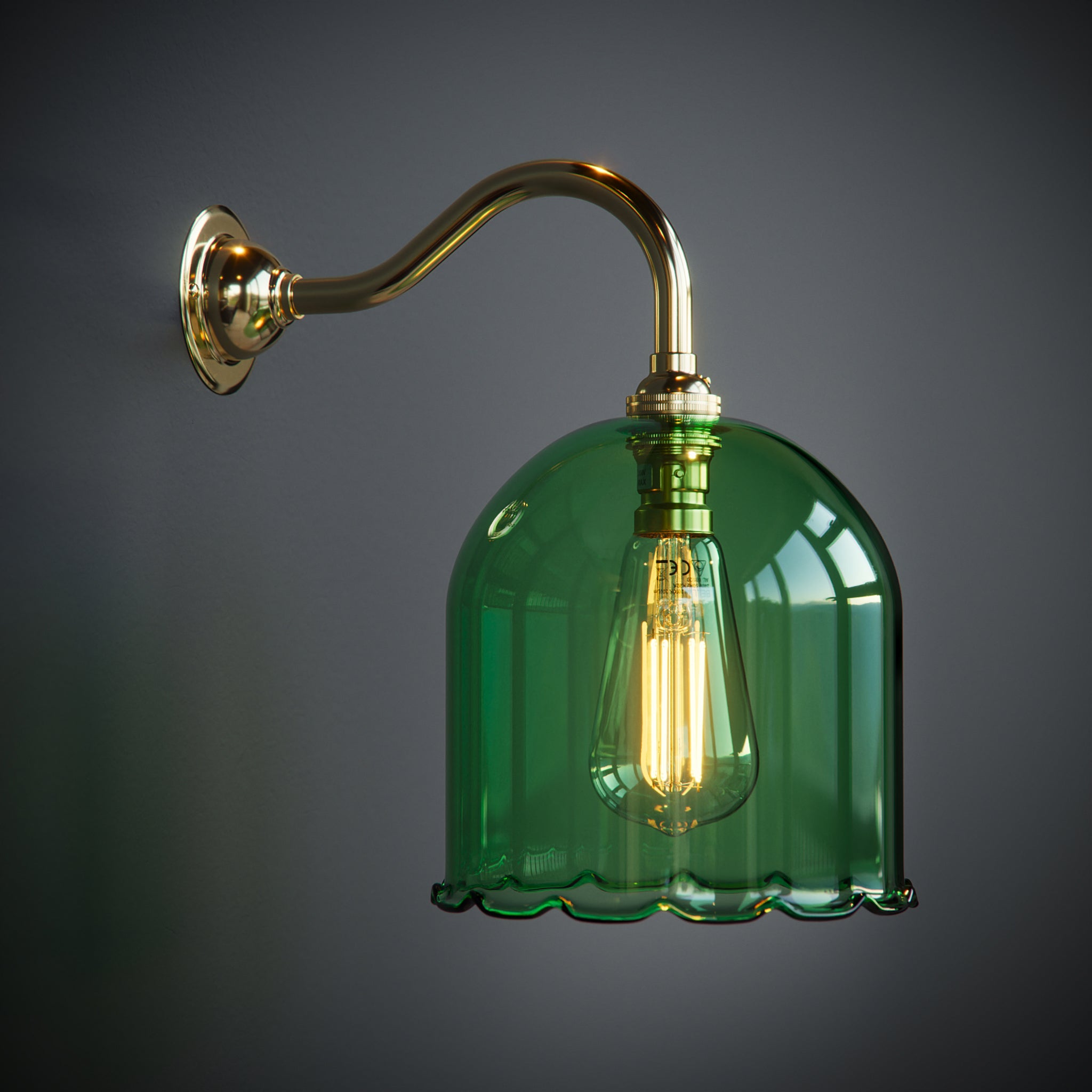 Frieda Frilled Classic Curved Arm Wall Light – Handblown Coloured Glass Lighting, Made in Britain