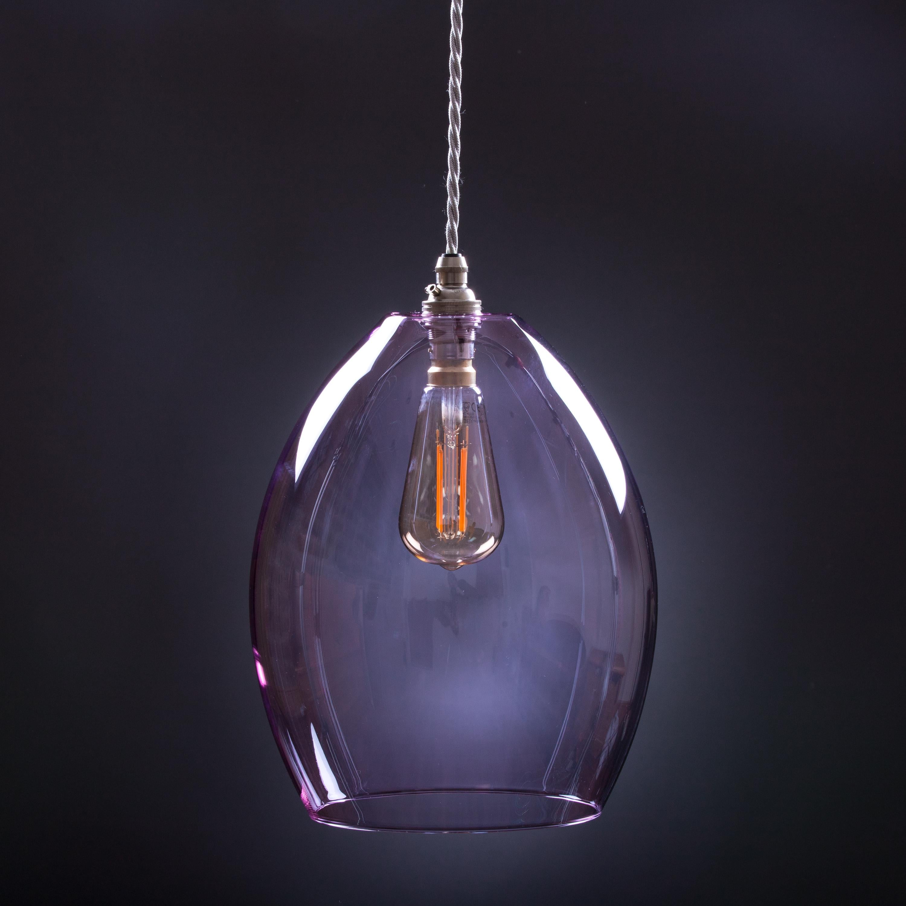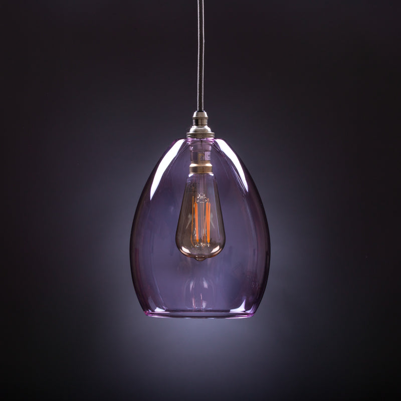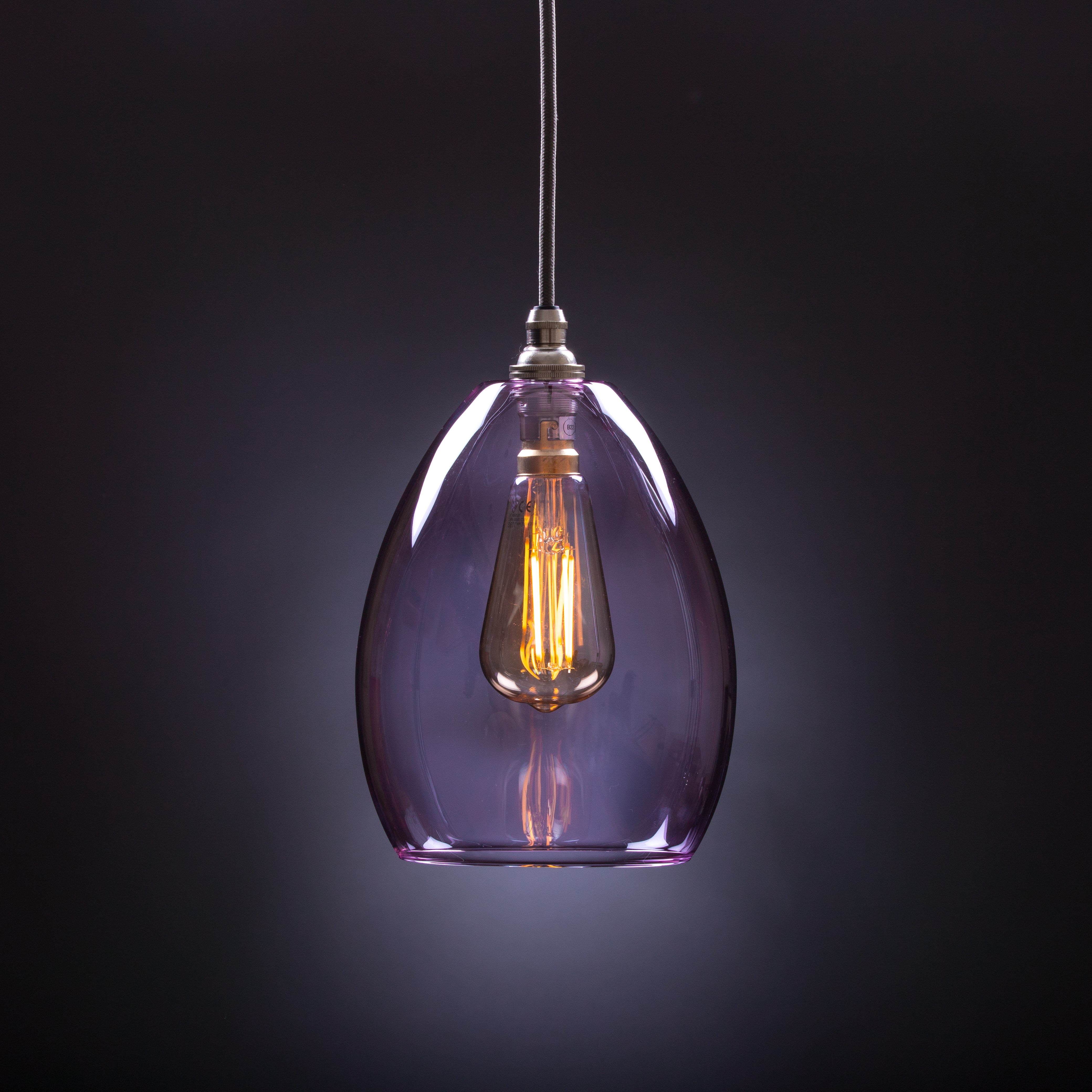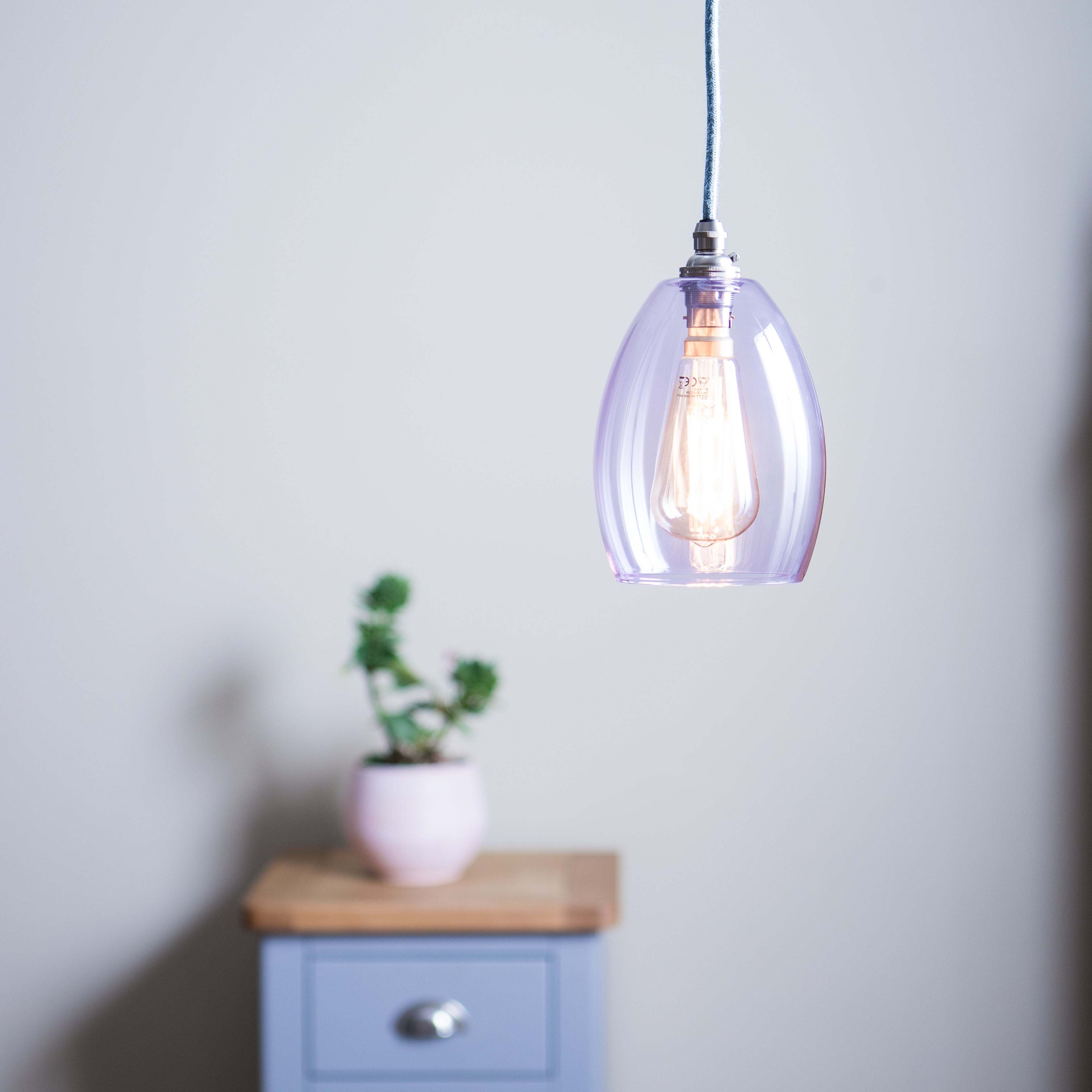 The delicate lilac glass casts a soft, soothing glow, whether suspended above your kitchen island, adorning your bedroom, or illuminating your living room, this pendant light effortlessly complements various design styles.