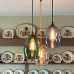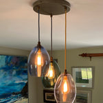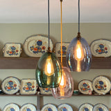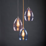A customer favourite, the Jules 3 way coloured glass cluster chandelier features three handblown glass shades, available in a stunning mix of jewel tones and soft pastels – including smoke grey, pink, pale blue, lilac, lime green, yellow, green, opal, amber, dark blue, and teal.