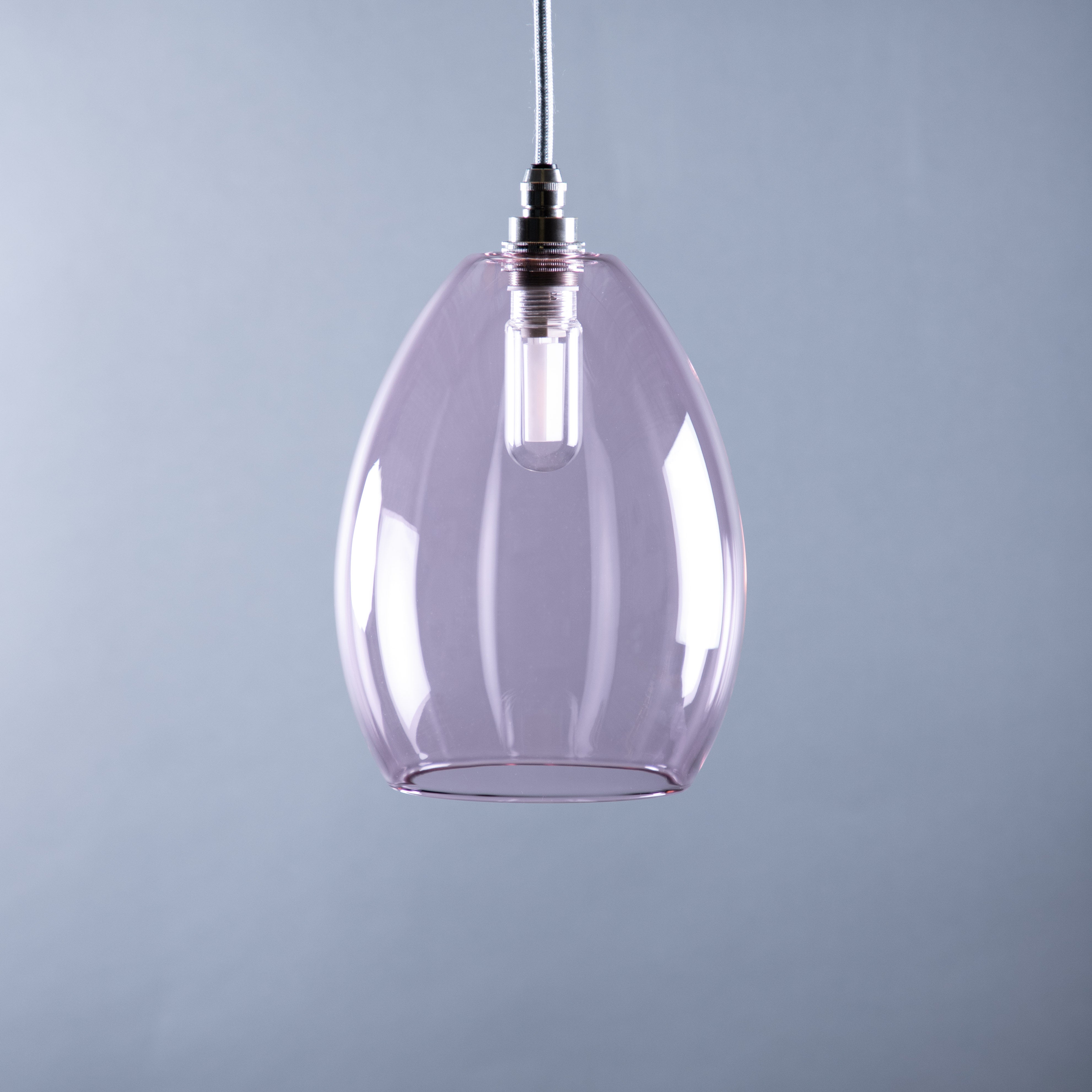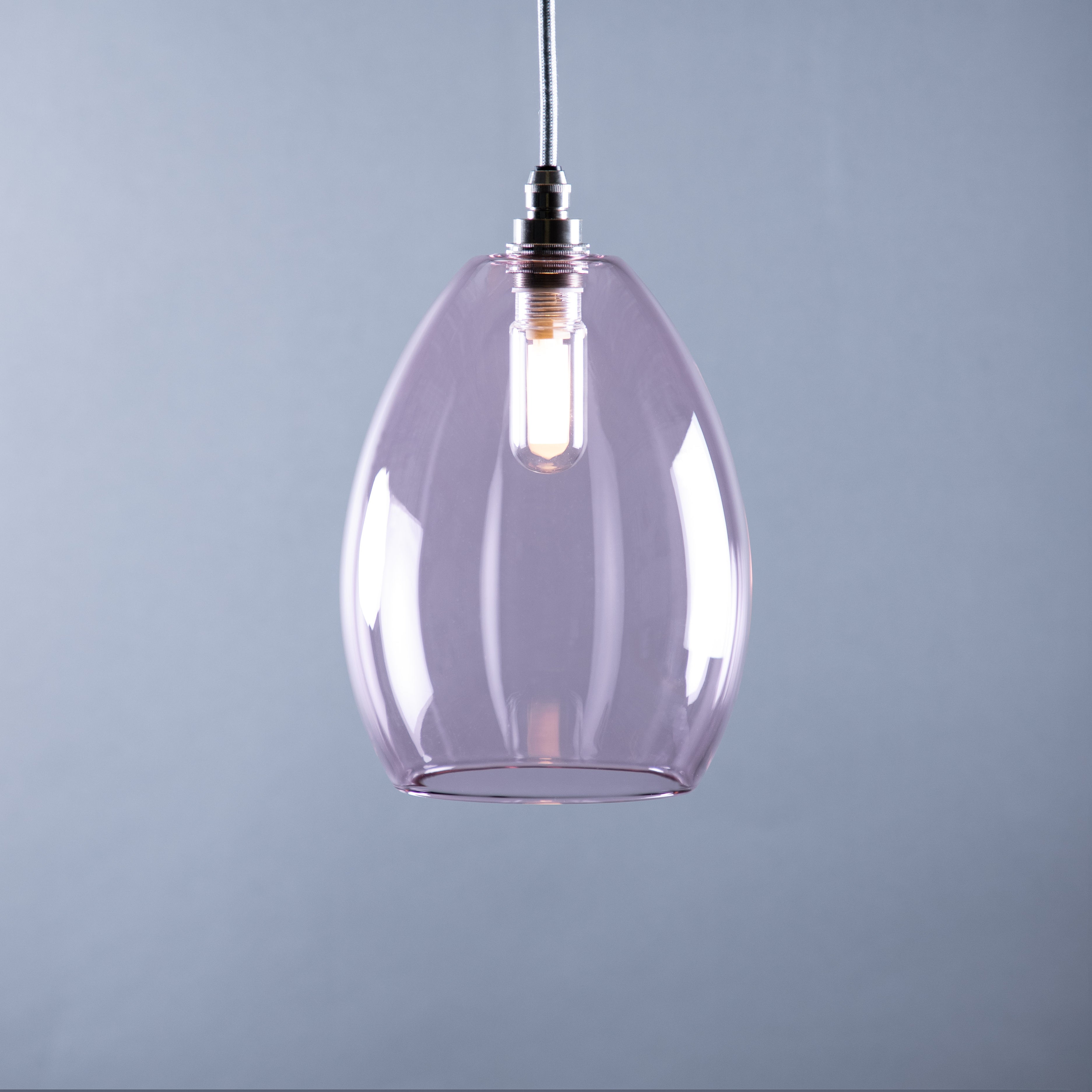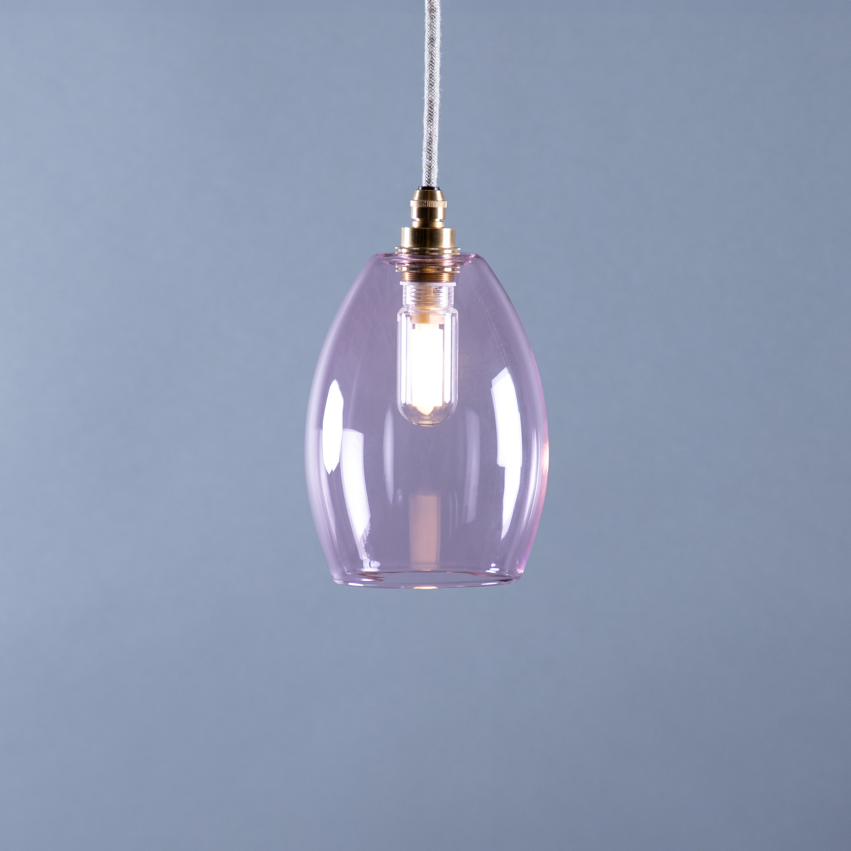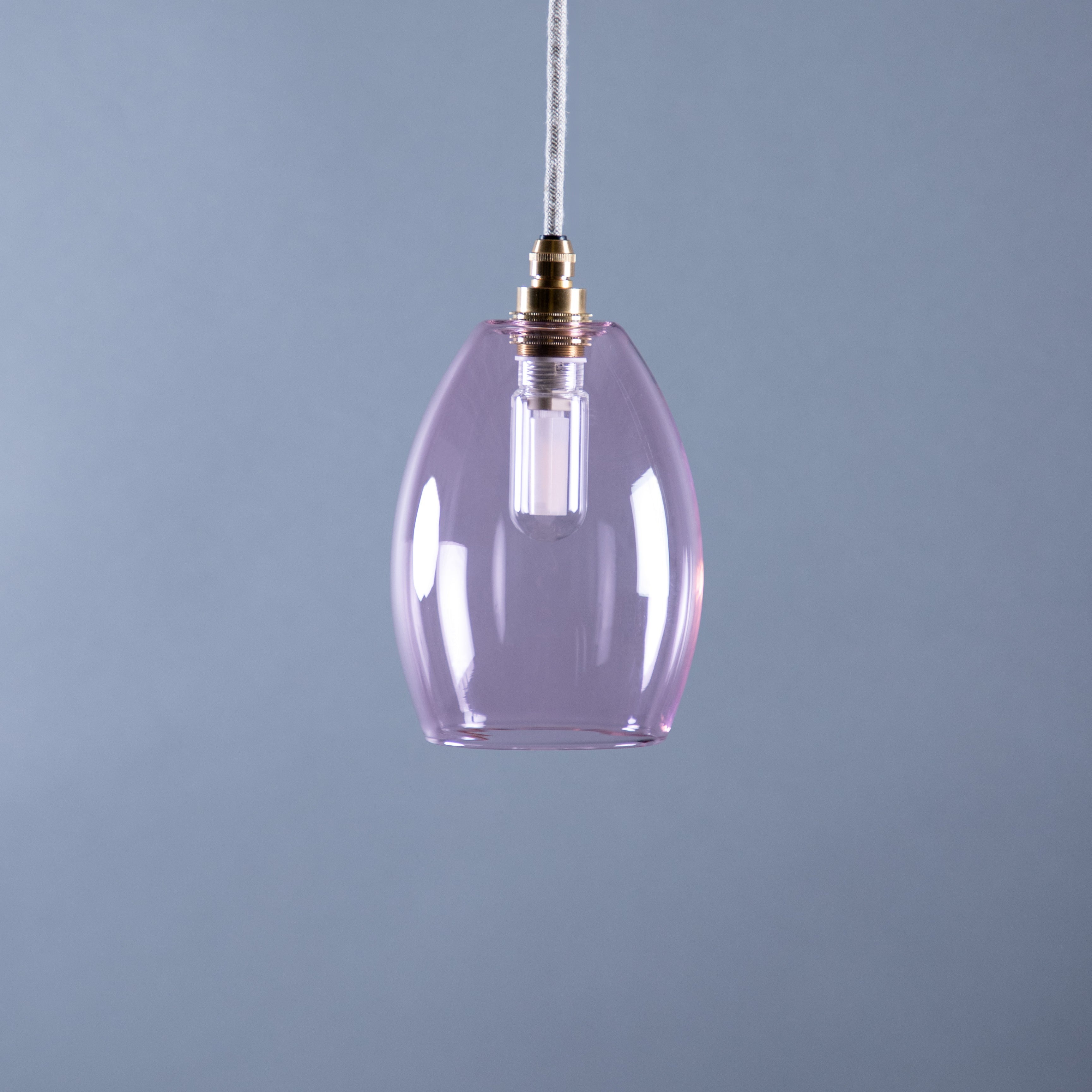Glow designed, IP44 bathroom pendant lights. Our simple, classic soft pink glass Jules shade creates an elegant, relaxing Glow in your bathroom. Handblown in the UK.