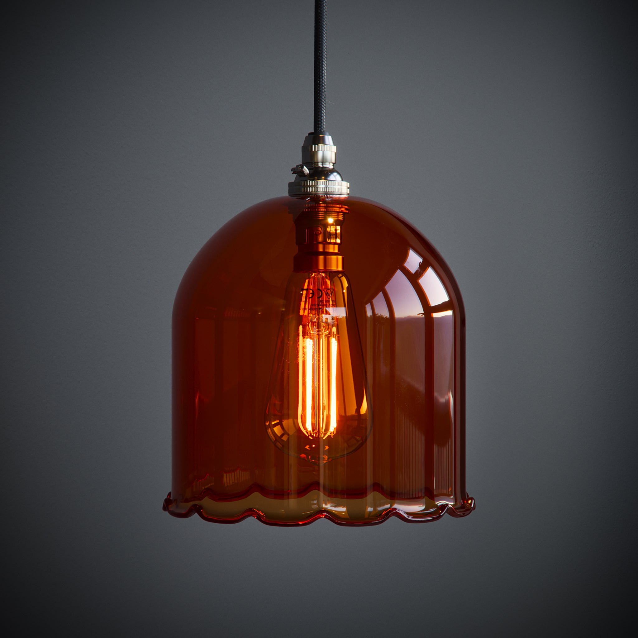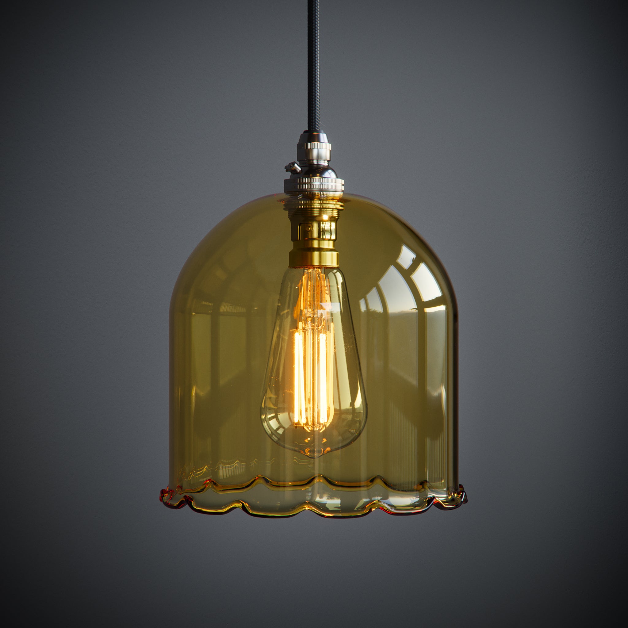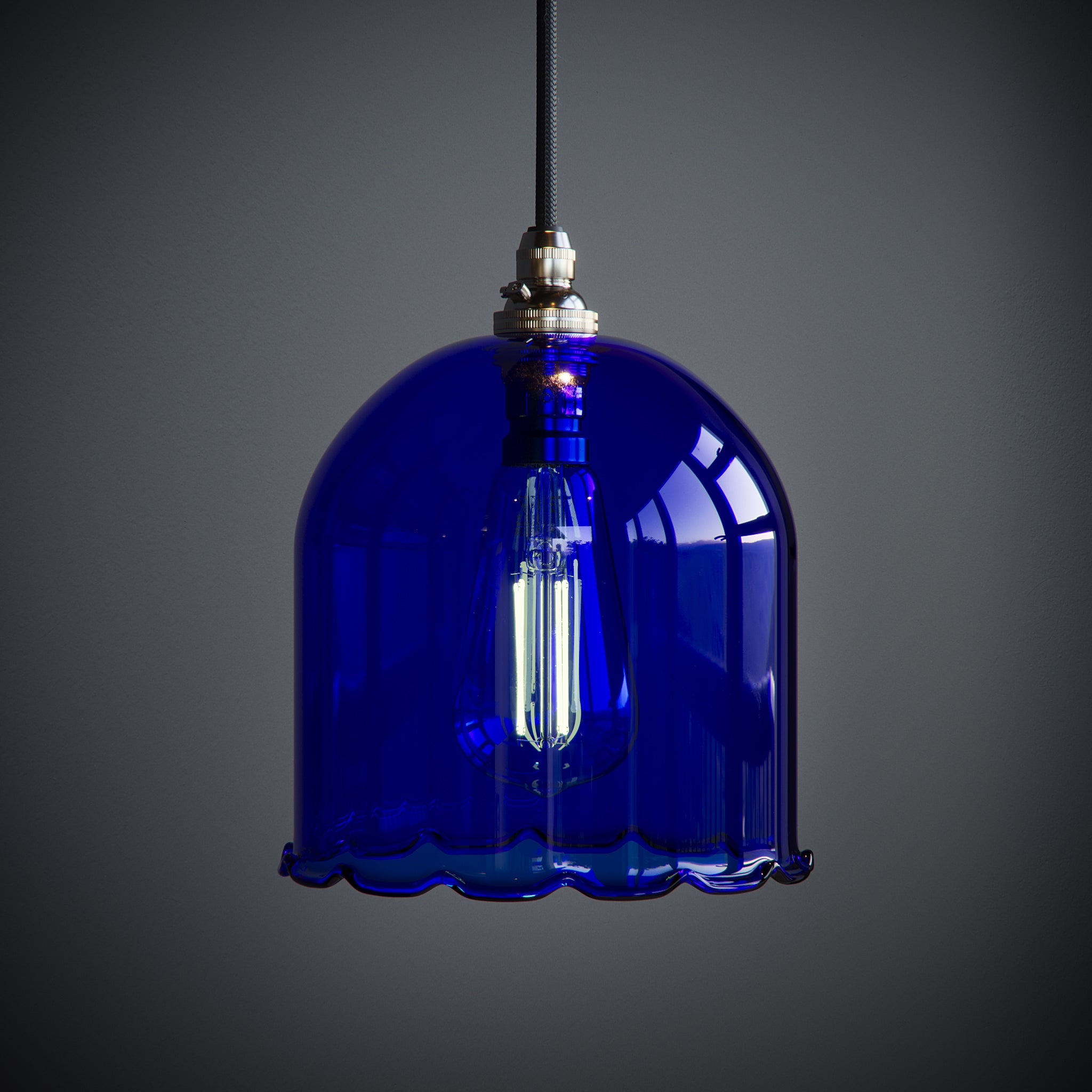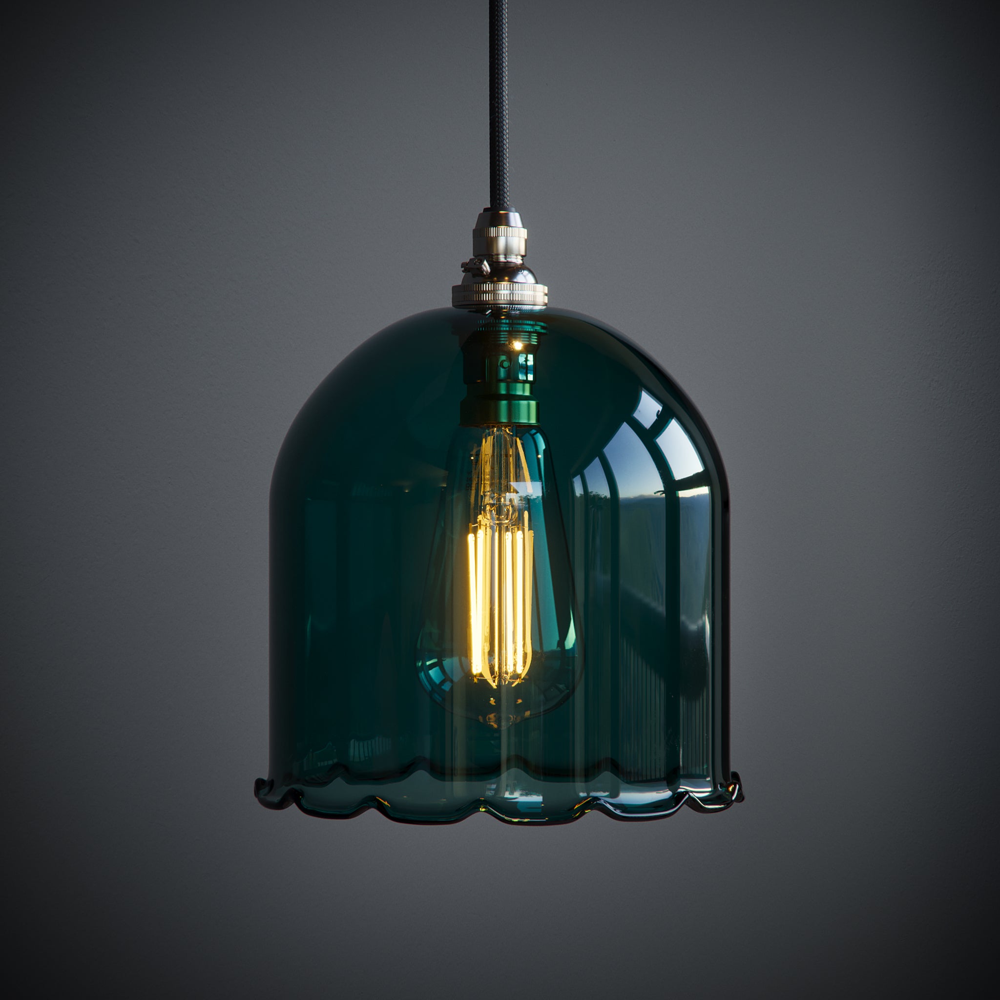 The Frieda Pendant Light is made in our North Yorkshire glassblowing studio. Each glass shade has a soft frilled edge, giving a gentle, decorative feel that works beautifully in bedrooms, reading nooks, or cosy corners.