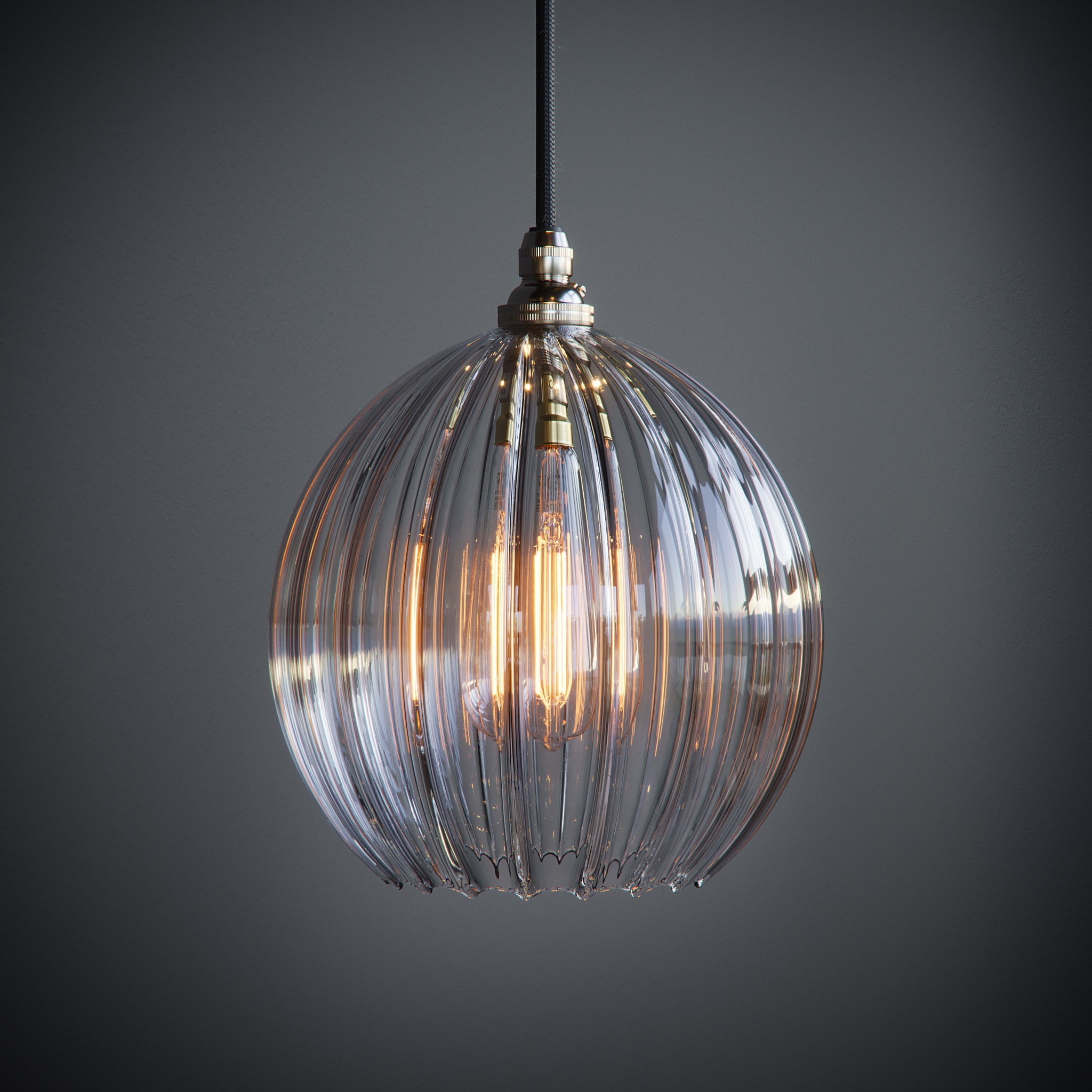 Handblown in the UK, the Wanda Ribbed Pendant Light is a beautifully crafted British-made glass globe light that suits both modern and traditional interiors. The wide ribbed glass adds subtle texture and detail, catching the light to create a soft, elegant glow.