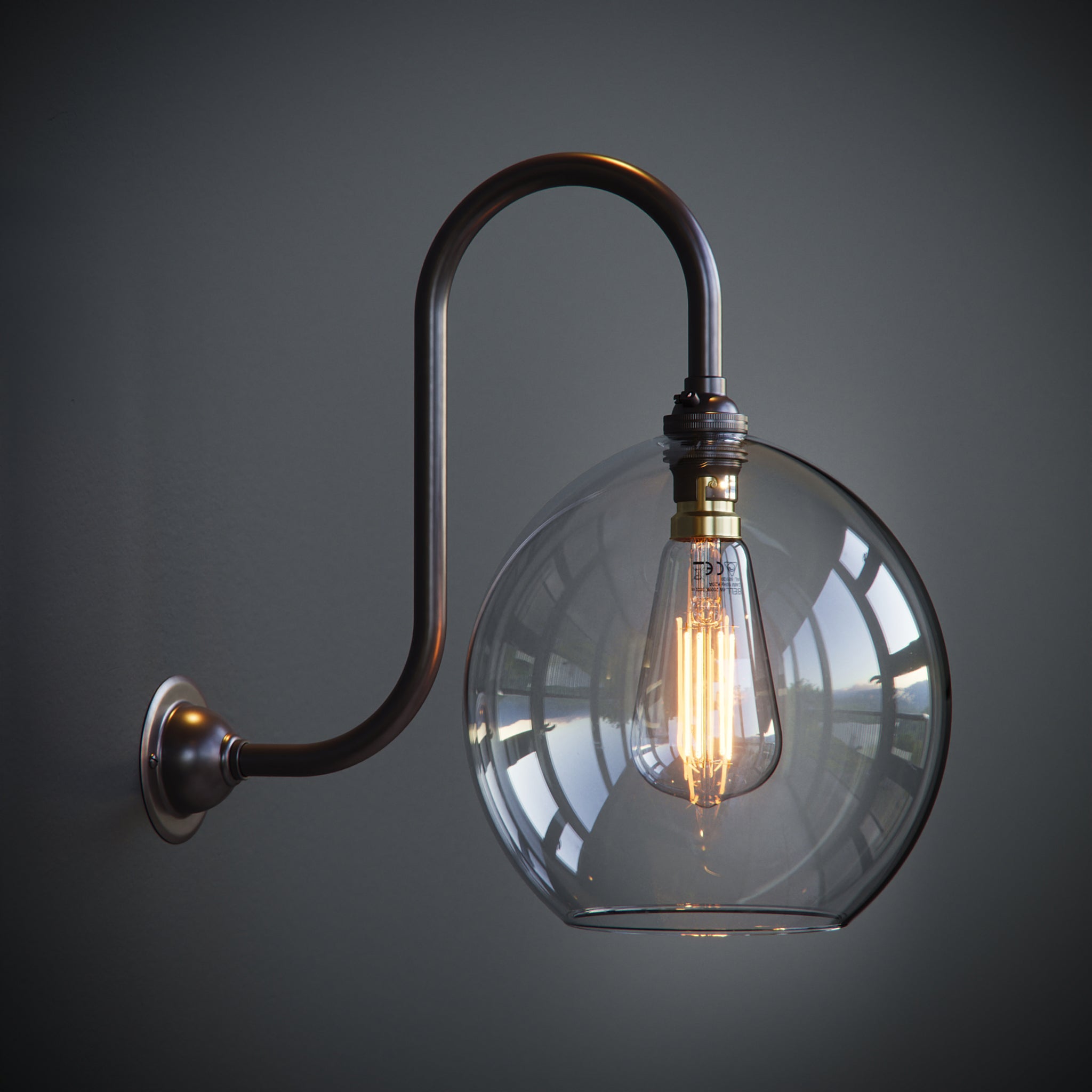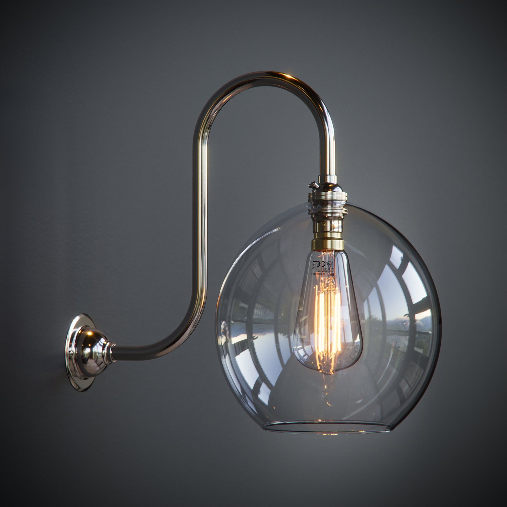 Wanda Globe Swan Neck Clear Glass Wall Light