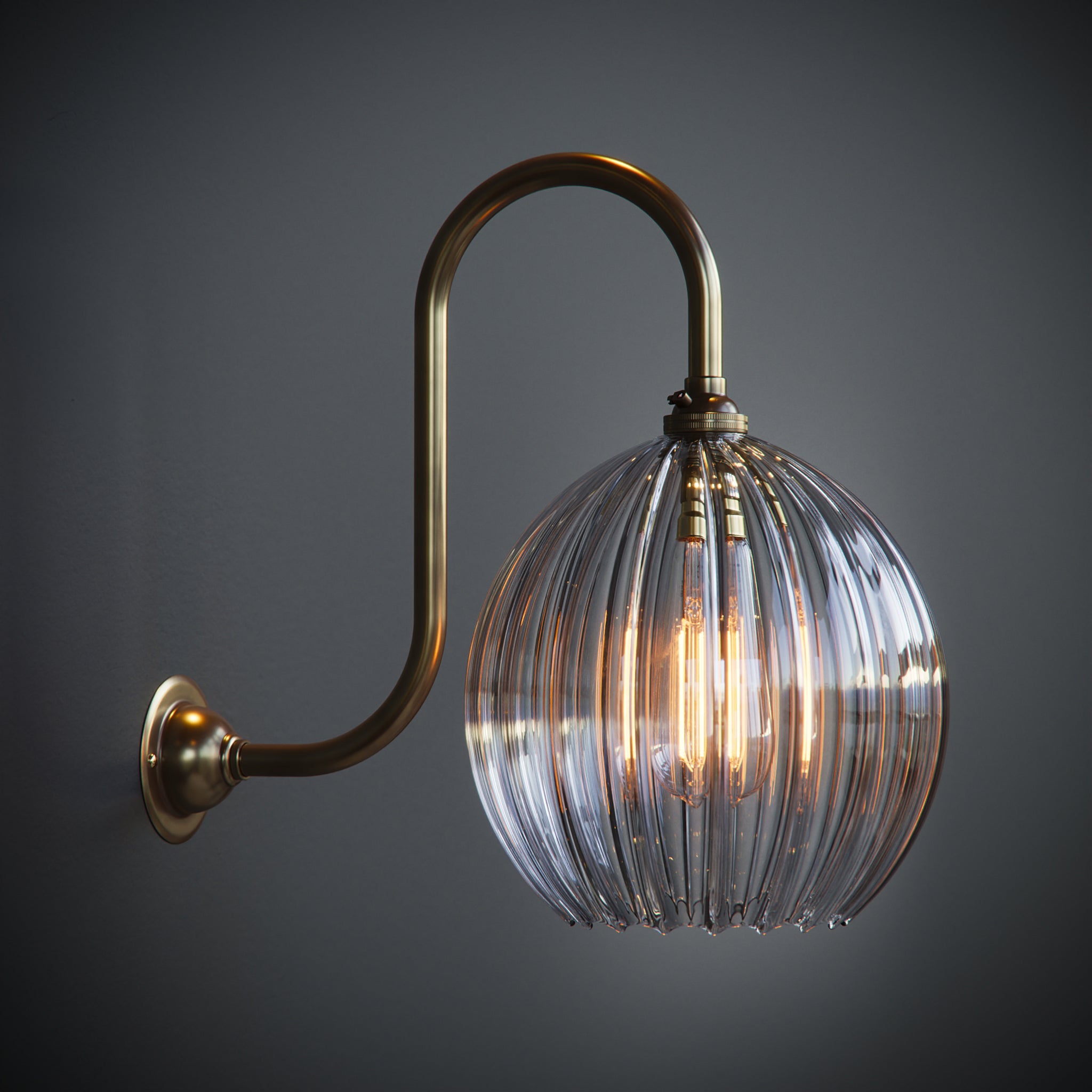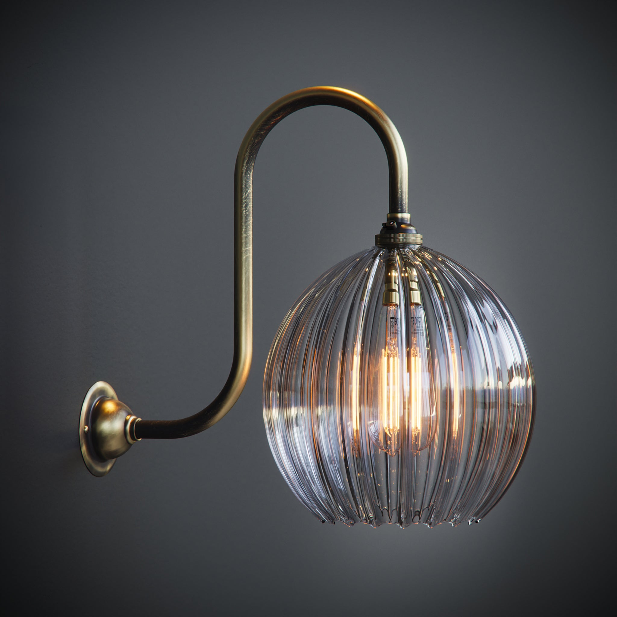 Wanda Globe Swan Neck Ribbed Glass Wall Light