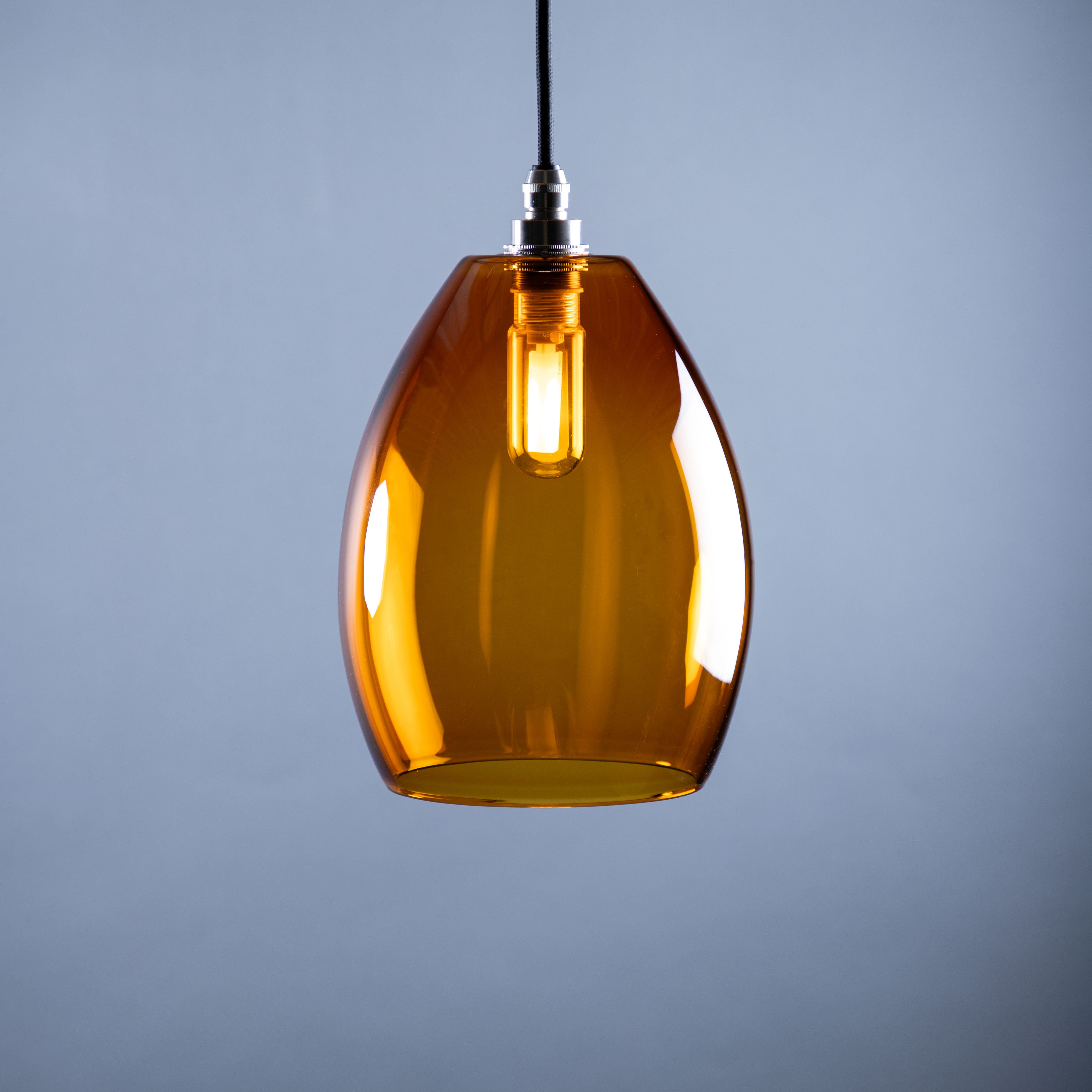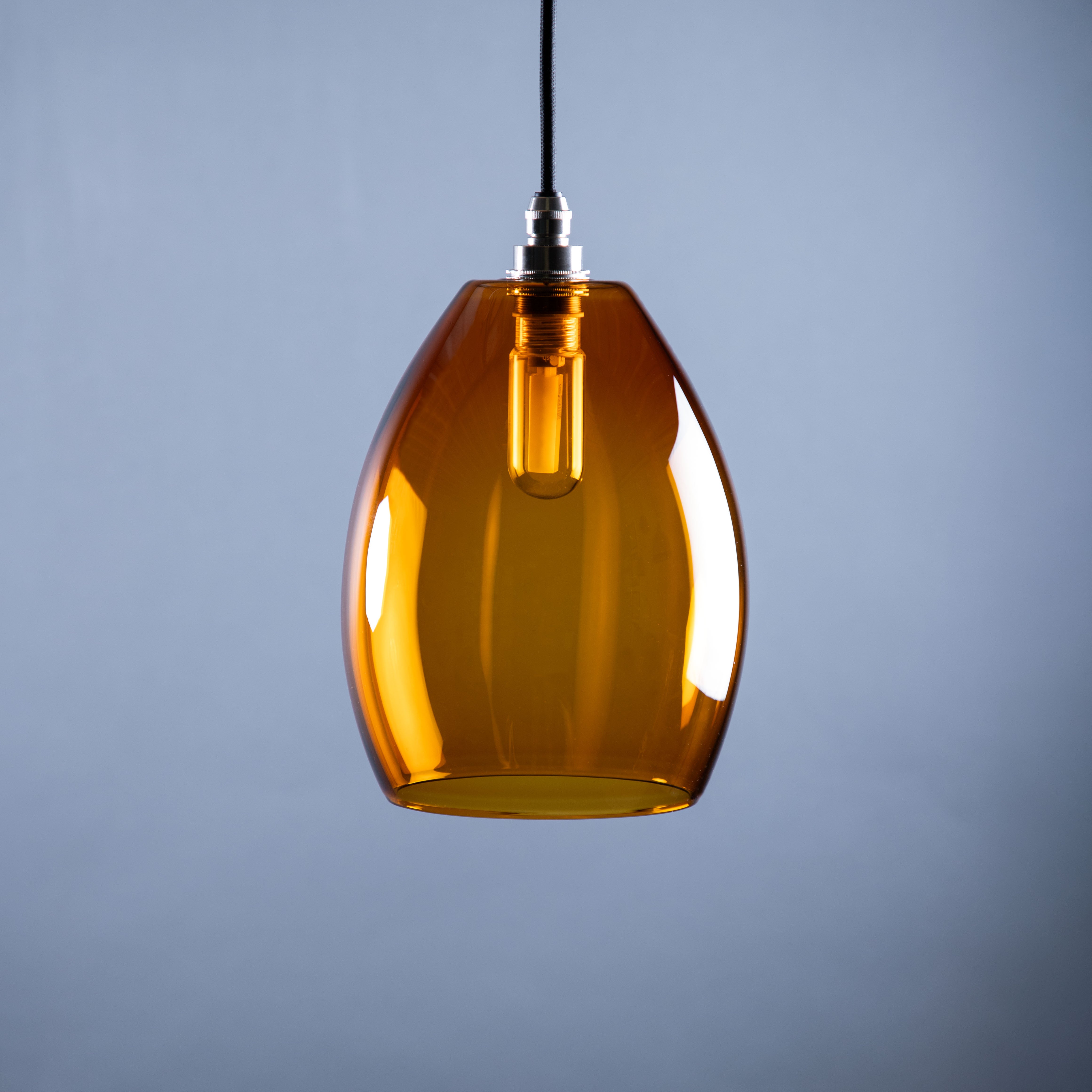 Glow designed, IP44 bathroom pendant lights. Our simple, classic amber glass Jules shade creates an elegant, relaxing warm Glow in your bathroom. Handblown in the UK, the Jules is simply beautiful.