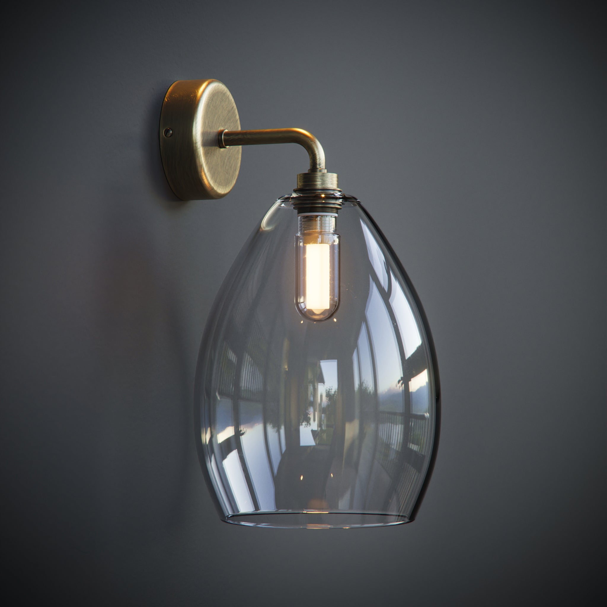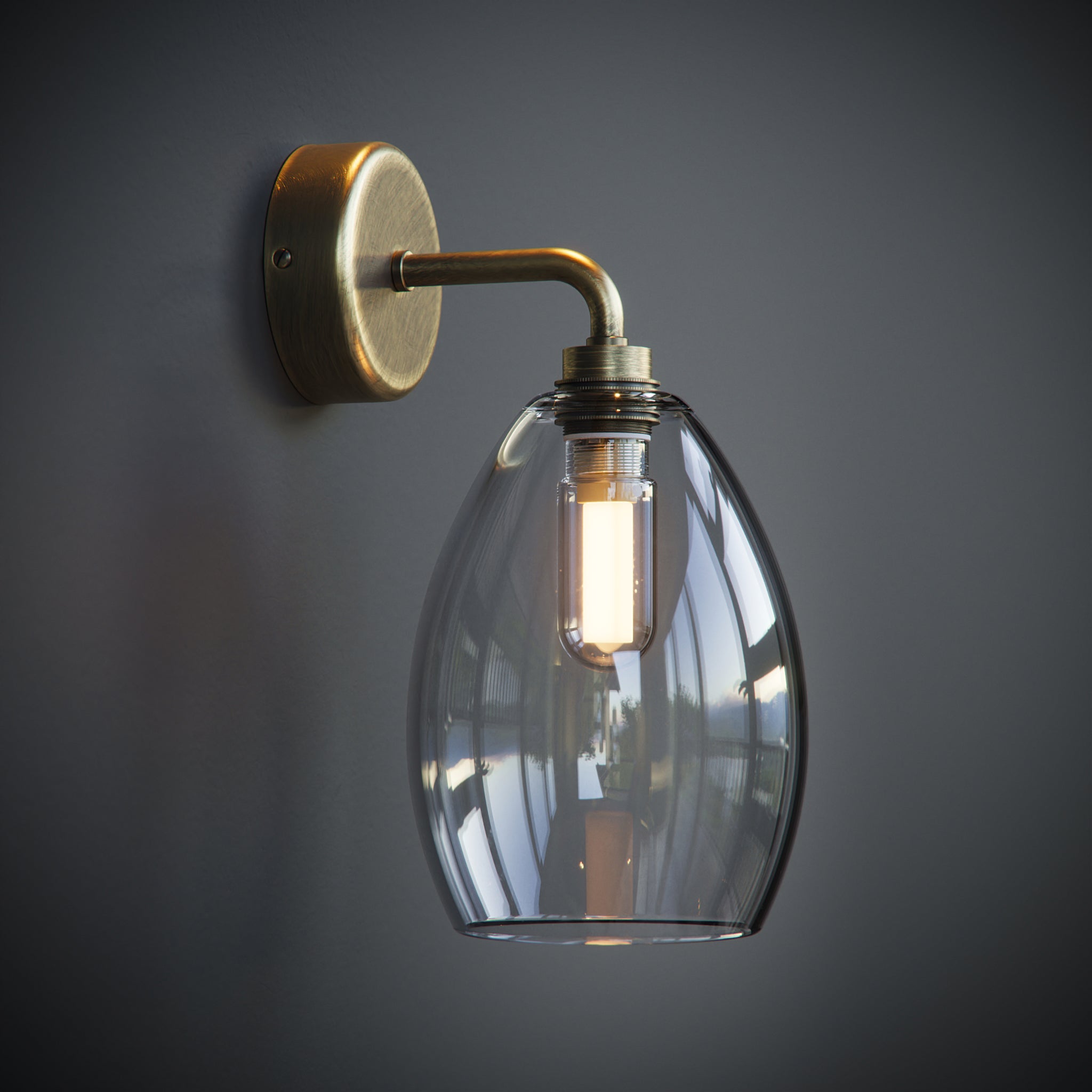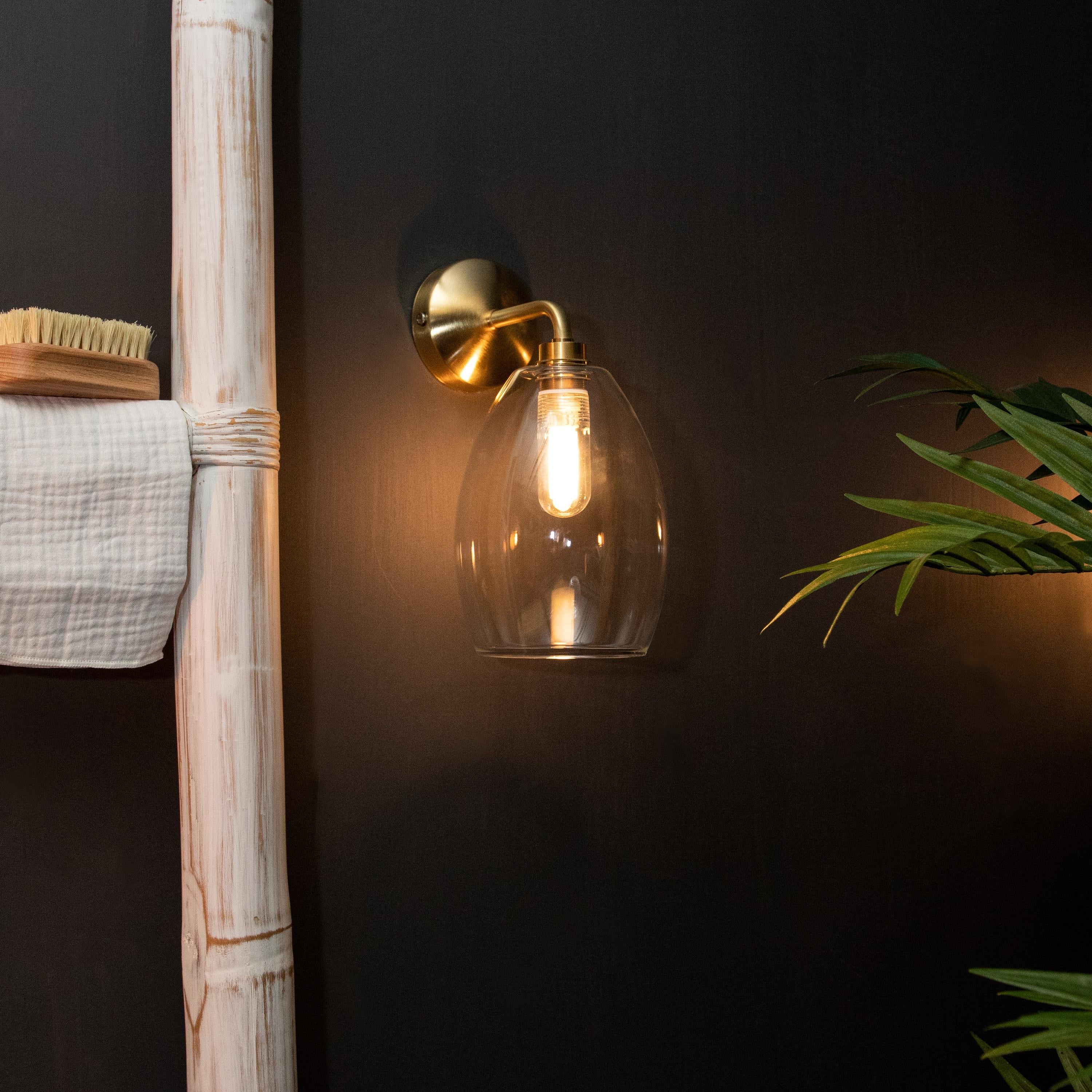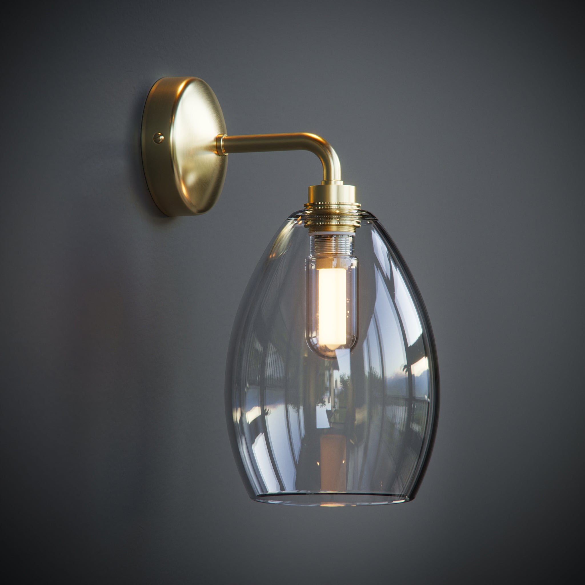 Glow designed, IP44 bathroom wall lights. Our simple, classic clear glass Jules shade creates an elegant, relaxing glow in your bathroom. Handblown in the UK, the Jules is simply beautiful. Available in brushed brass and brushed nickel, antique brass and bronze. Perfect for traditional and contemporary interiors alike.