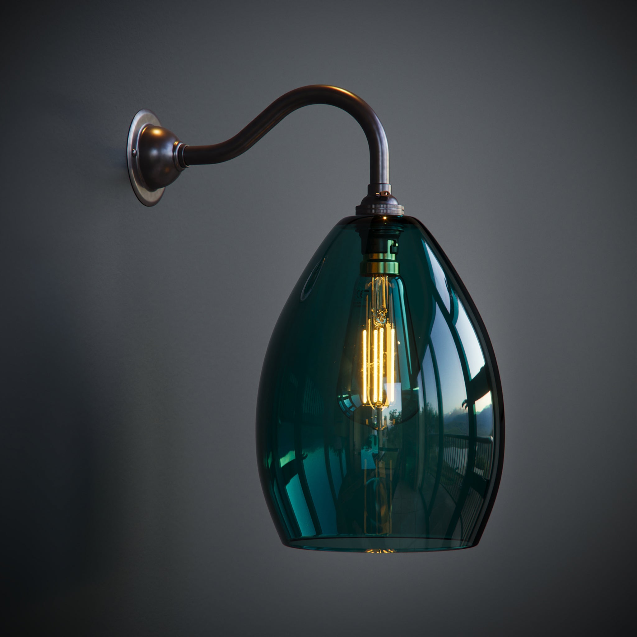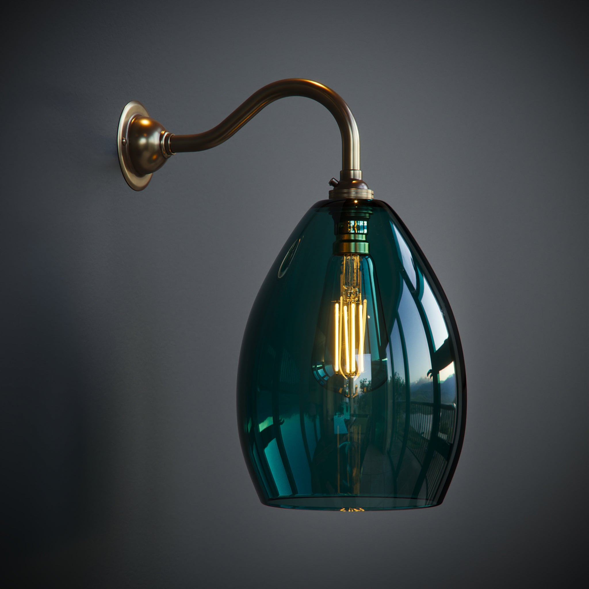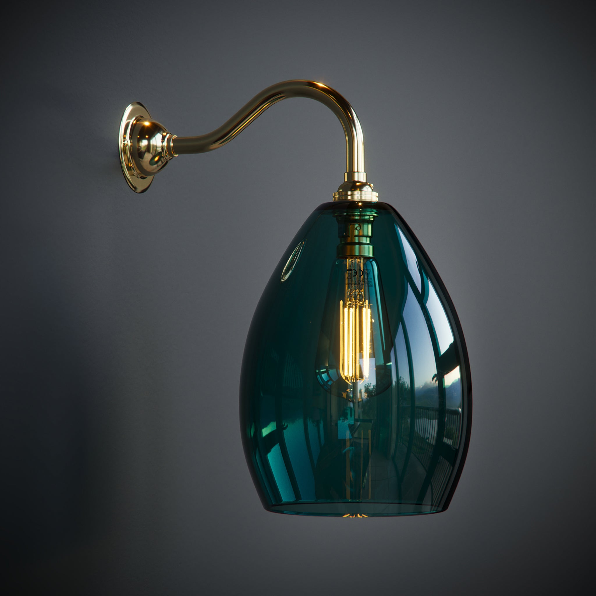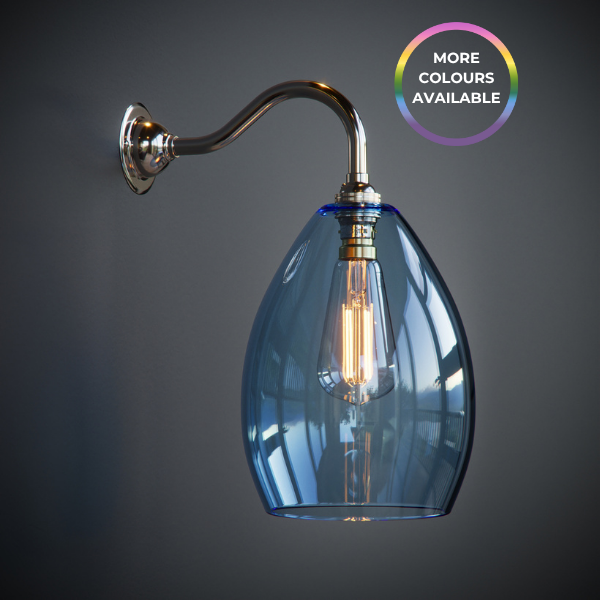 Jules Medium Classic Curved Arm Wall Light – Handblown Coloured Glass Wall Light