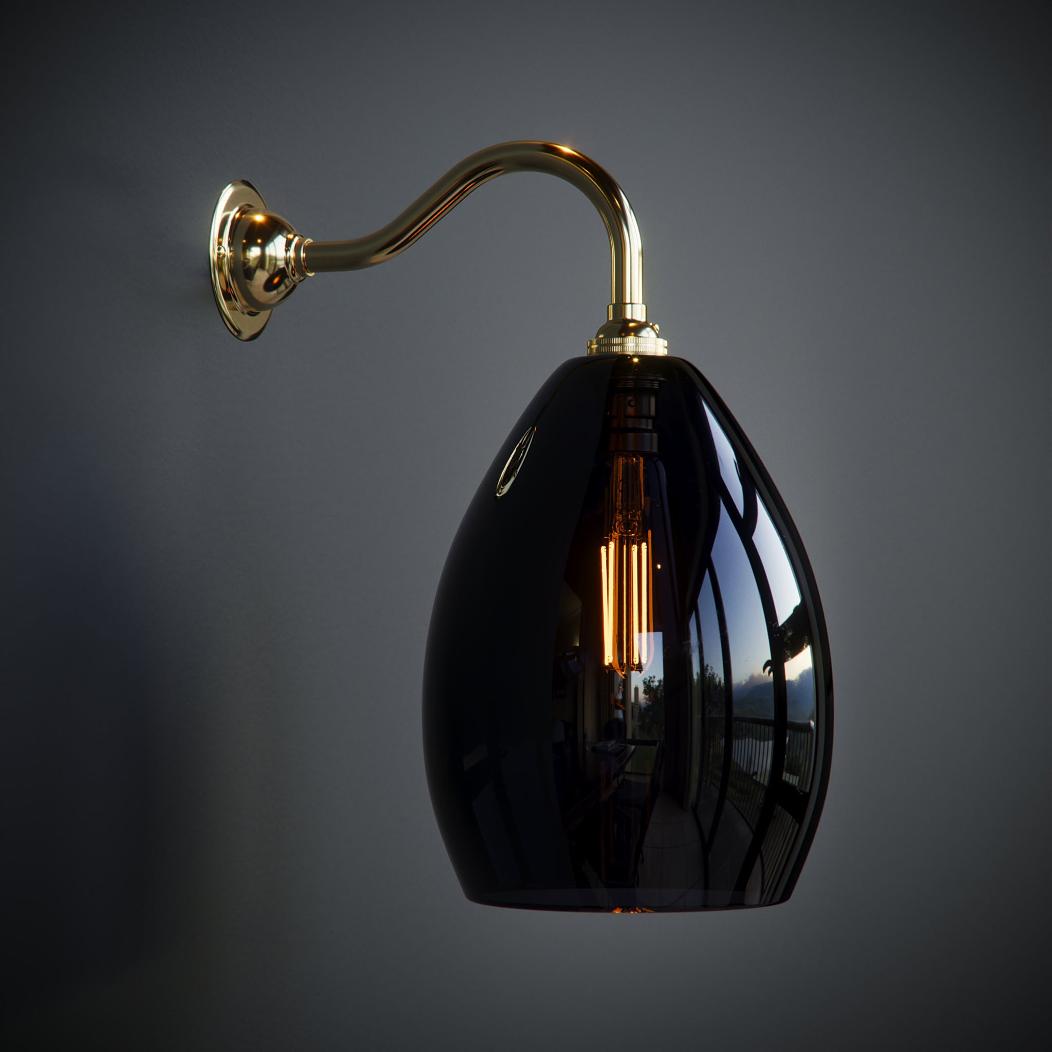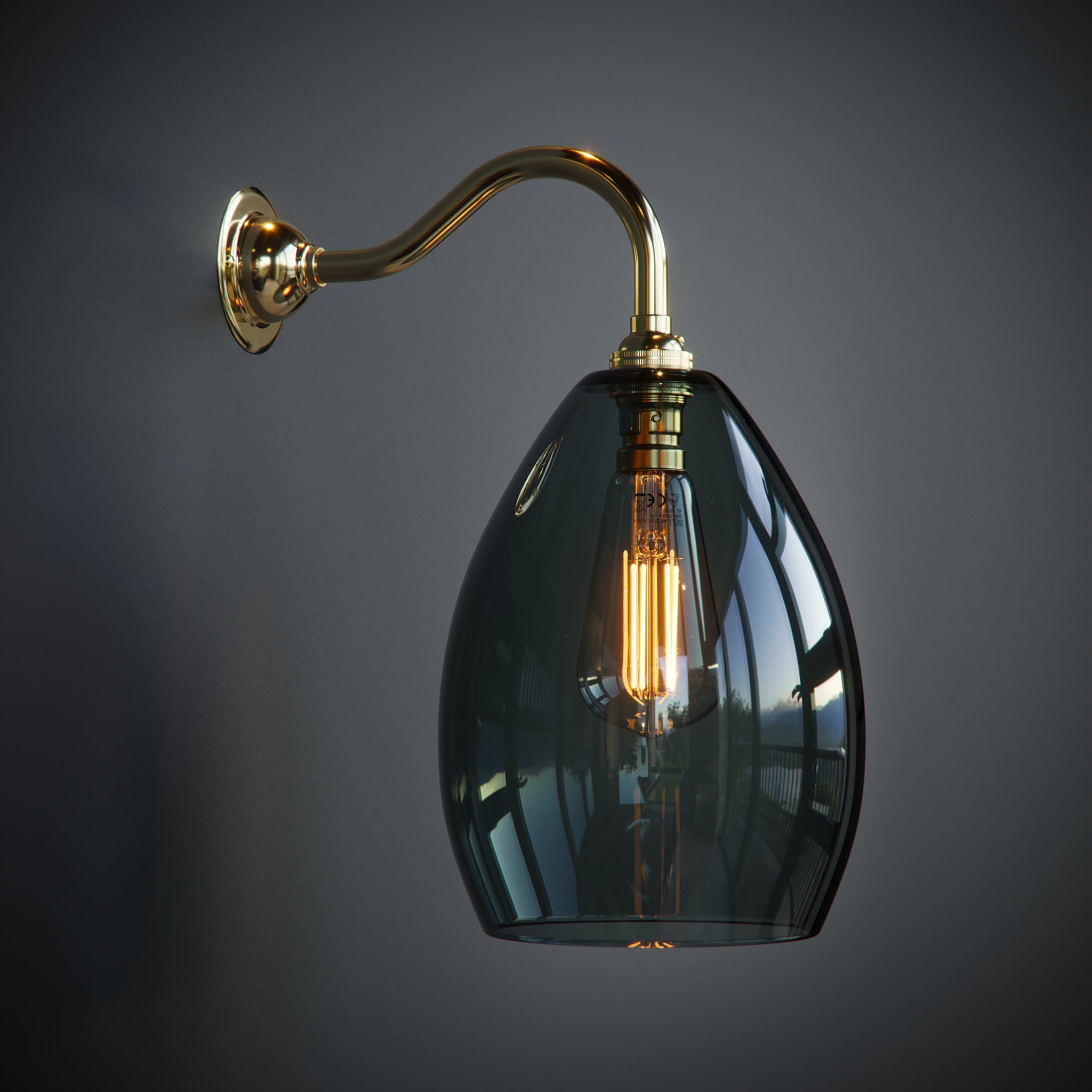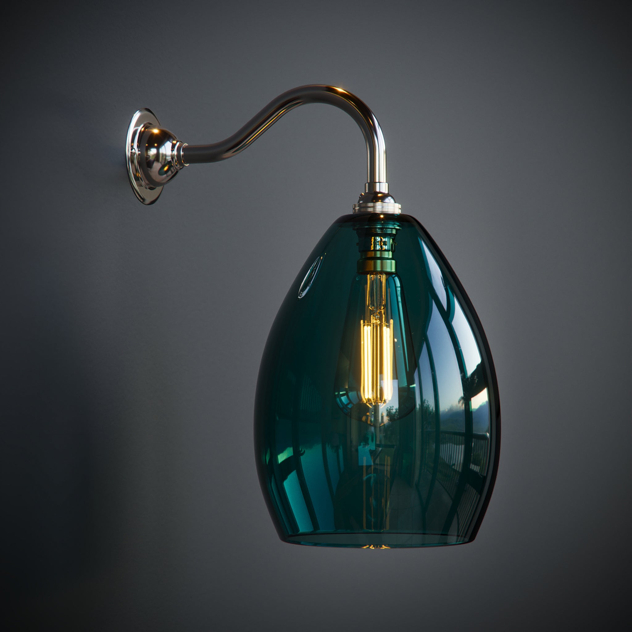 Jules Medium Classic Curved Arm Wall Light – Handblown Coloured Glass Wall Light
