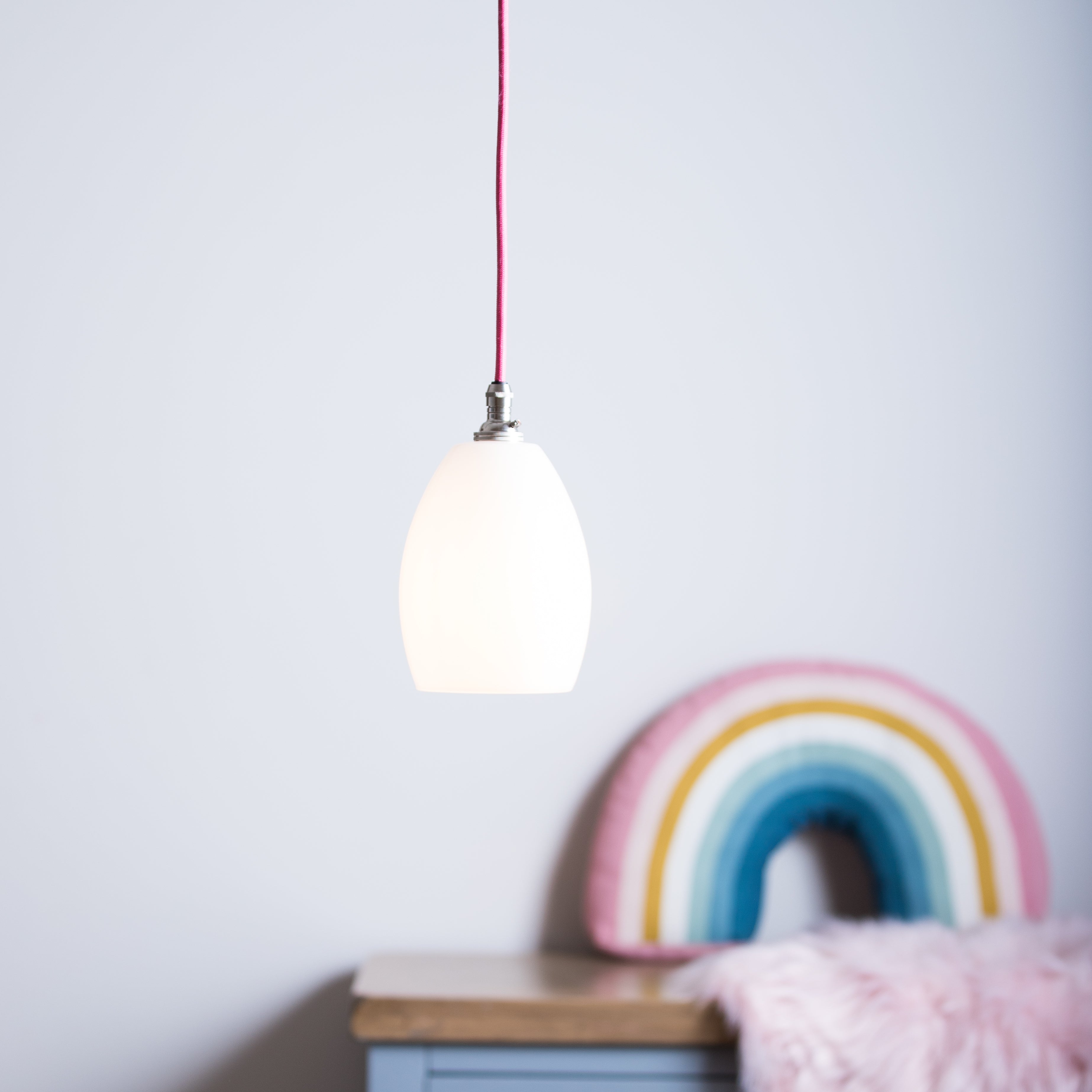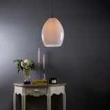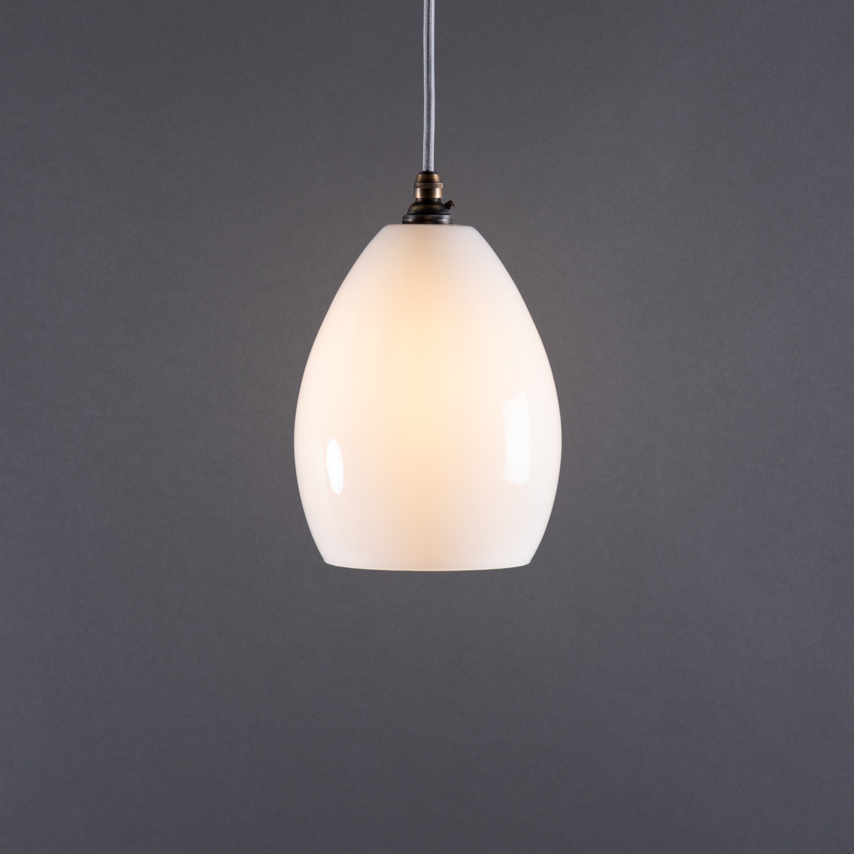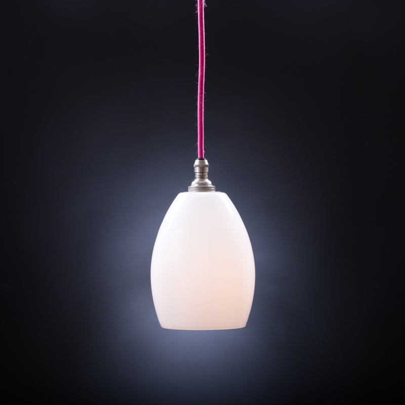 The opal glass gently diffuses light, a perfect option for kitchen or bedroom lighting.