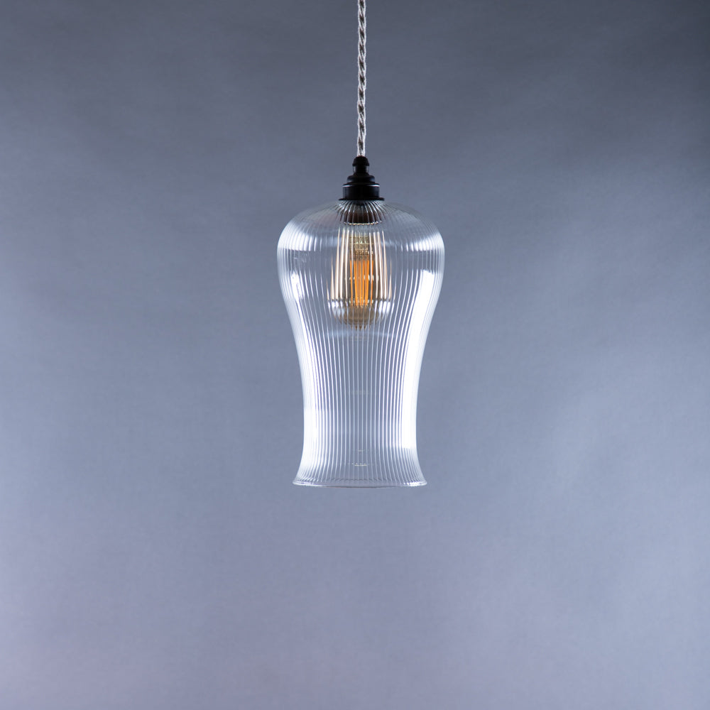 Fine ribbed glass pendant light | Handblown lighting UK | Kitchen island pendants | Customisable ceiling lights | British lighting brand | Made in Britain