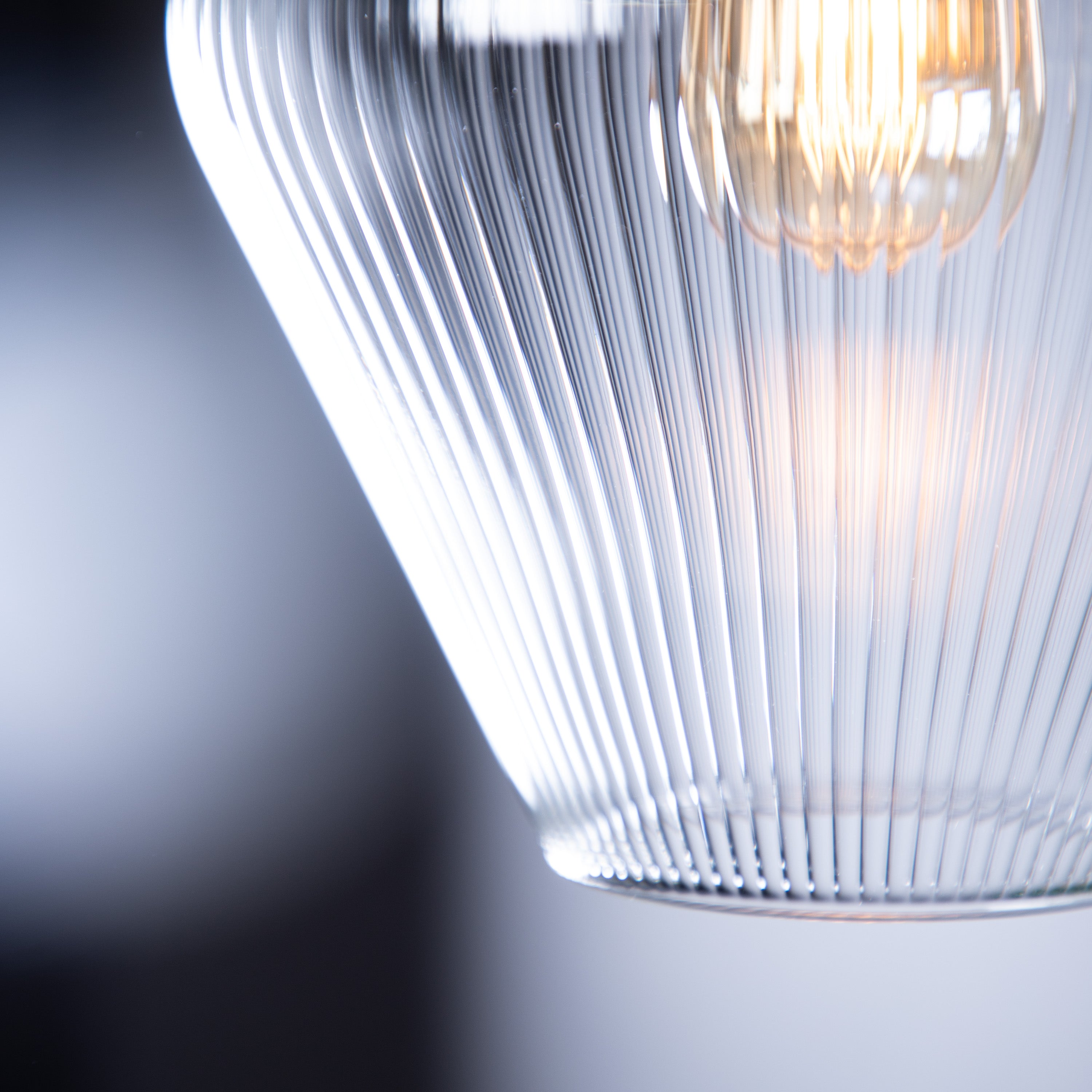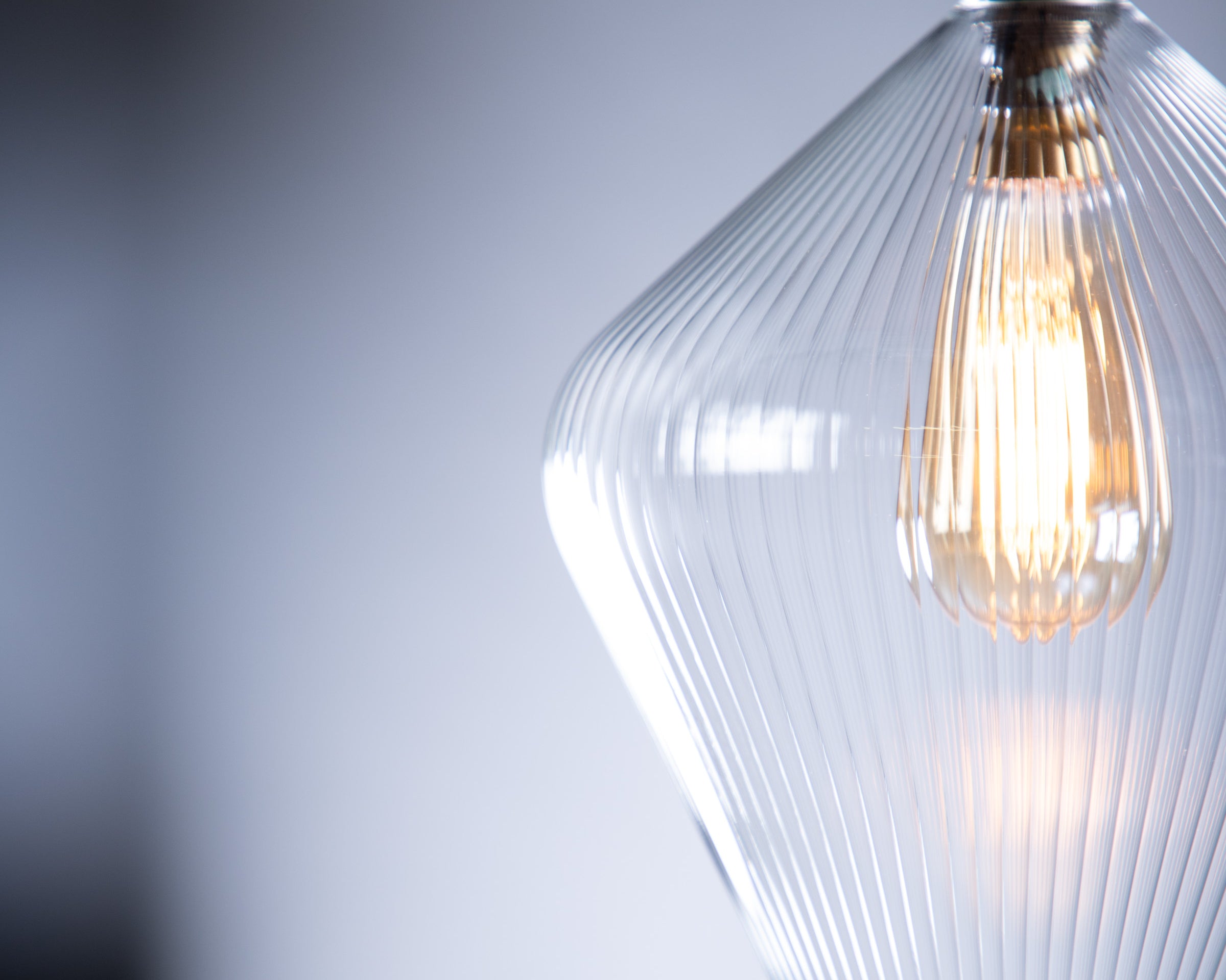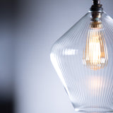 The Olive fine ribbed pendant light is handblown in our UK studio and showcases a distinctive soft diamond silhouette with delicate ribbed glass detailing. Elegant and timeless, this artisan pendant brings both texture and sophistication to your interior.