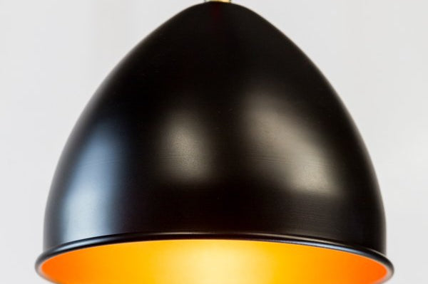 The shade has a hand painted black exterior and gold interior which gives off a wonderful golden glow.